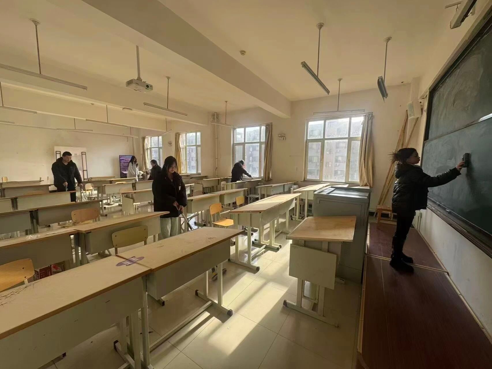 在校外红旗岭生态公园活动场地,学生们带着专业热情与责任意识,用双手改善公共环境,将专业技能转化为社会服务能力。校内劳动场景中,学生们化身“校园美容师”与“空间守护者”,扎实推进日常生活劳动与服务性劳动。宿舍里,大家每日整理内务、清扫卫生,保持居住环境整洁有序,严守学校住宿规定;专业教室与实验室中,学生们轮流负责卫生清扫、设备维护,学习使用清洁工具与基础维护器材,培养空间管理意识与劳动习惯。学生们还主动承担起思成楼图书角的整理与优化工作,清理书架灰尘、擦拭桌面与地面,排查消防隐患,为师生打造了舒适的阅读与交流空间。