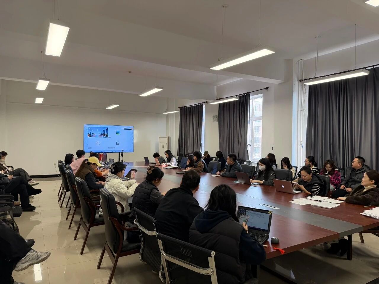会议开始,首先由视觉传达设计、网络与新媒体、环境设计、时尚传播专业教研室主任依次系统介绍了各专业的毕业选题整体方向、核心培养目标及部分代表性选题案例。网络与新媒体专业聚焦新媒体传播趋势,选题涵盖 “乡村振兴背景下地方文旅 IP 短视频传播策略”“元宇宙场景中的品牌营销创新设计” 等方向,强调理论与实战的结合;视觉传达设计专业围绕传统文化活化、绿色设计理念,推出 “非遗技艺的现代视觉转化设计”“可持续包装设计的市场应用研究” 等选题,突出文化传承与实用价值;时尚传播专业紧扣技术发展前沿,选题涉及 “交互设计中的情感化表达”“虚拟数字人在直播场景中的应用创作” 等,彰显科技与艺术的融合;环境设计专业则立足纪实创作与内容创新,提出 “城市更新中的口述史纪录片创作”“适老化改造” 等选题,注重社会观察与人文关怀。各专业选题均展现了鲜明的专业特色与时代特征,为后续创作实践奠定了良好基础。