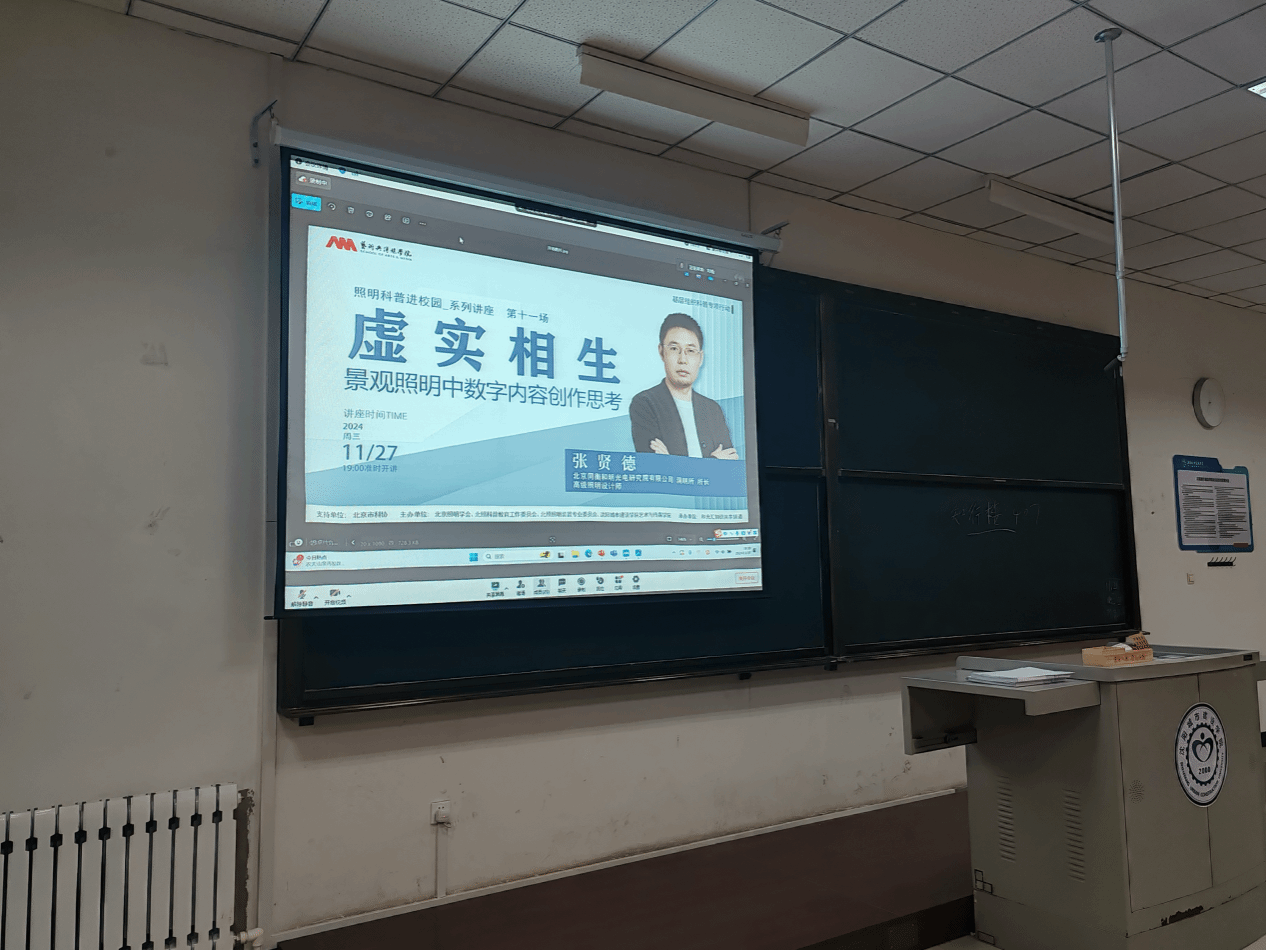 11月27日19时,1946伟德国际源自英国利用晚自习在思成楼举办了【艺传之旅·名师大讲堂】主题讲座。特邀北京同衡和明光电研究院有限公司洞明所所长、高级照明设计师张贤德带来题为《虚实相生·景观照明中数字内容创作思考》的主题讲座。本次讲座由副院长刘旭主持,全体师生观看。