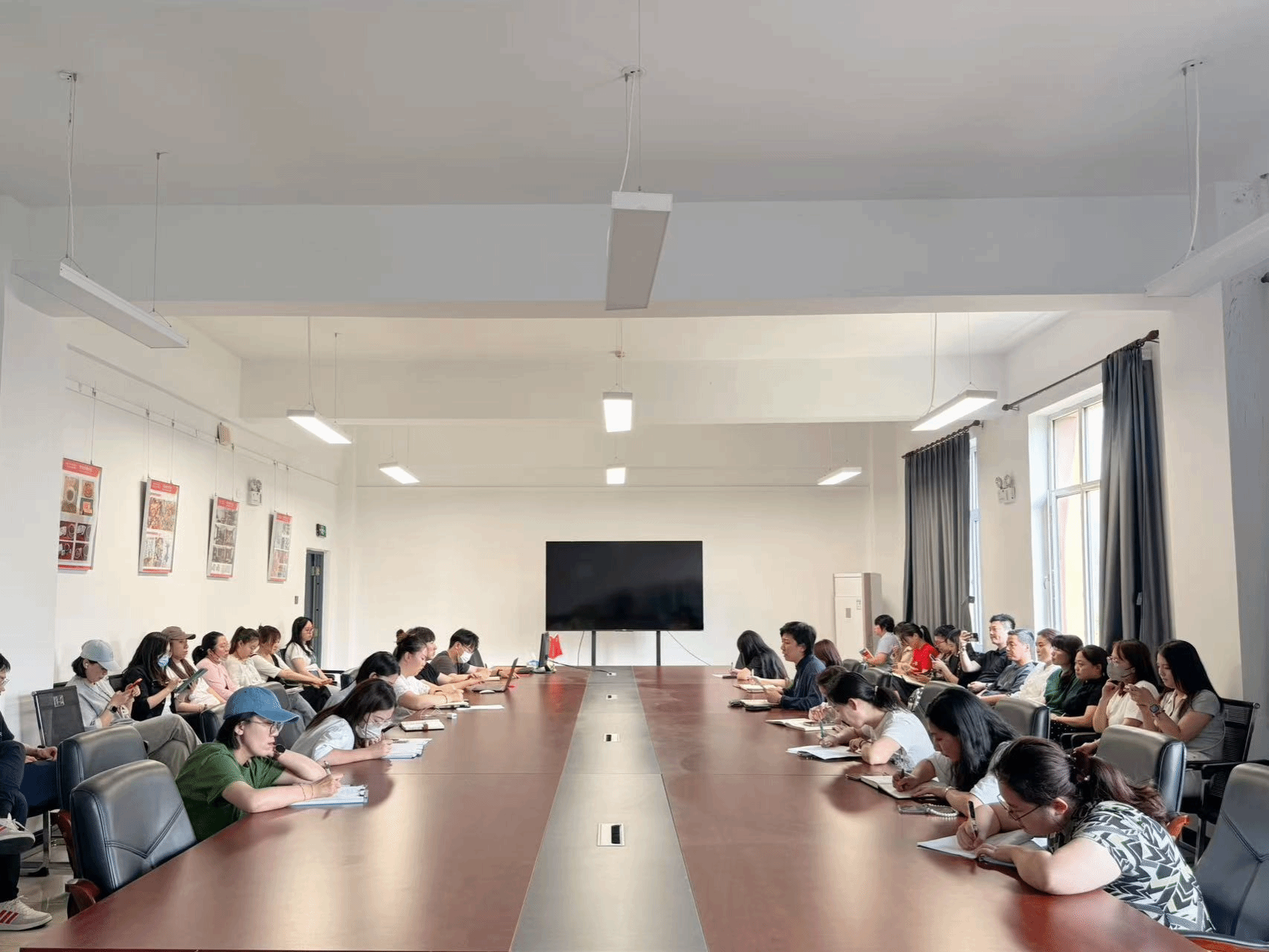 5月29日下午,1946伟德国际源自英国在思成楼309会议室召开全体教师工作会议。会议由院长吕从娜主持,党总支书记、副院长吕向楠,副院长刘旭,院长助理陈禹竹、杨越茗及全体教职工参加会议。