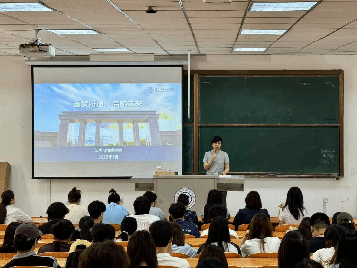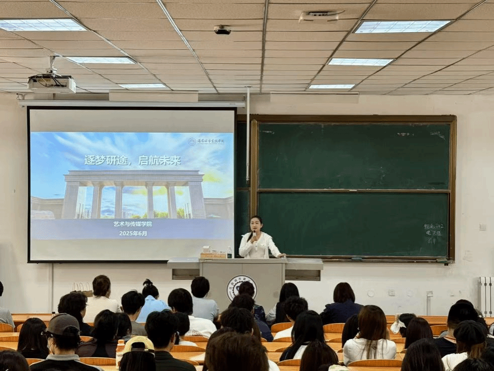 会上,吕从娜首先分析了当前艺术与传媒领域的行业发展趋势以及研究生学历在未来职业发展中的重要性。她指出,在当今竞争激烈的社会环境下,考研不仅是提升个人专业素养、拓宽学术视野的重要途径,更是增强就业竞争力、实现人生理想的关键跳板。她以学院考研成功的真实案例鼓励学生们树立远大目标,勇敢挑战自我,在考研的道路上坚定信念,勇往直前。同时,宣布学院将组建考研导师团,整合师资力量开设专项辅导课程,并设立自习室与线上答疑平台,为学生考研提供政策保障。学院向学生们承诺,将全力为考研学子提供全方位的支持和保障,从学习资源到师资力量,从心理辅导到后勤服务,确保每一位学生都能心无旁骛地投入到考研复习中。