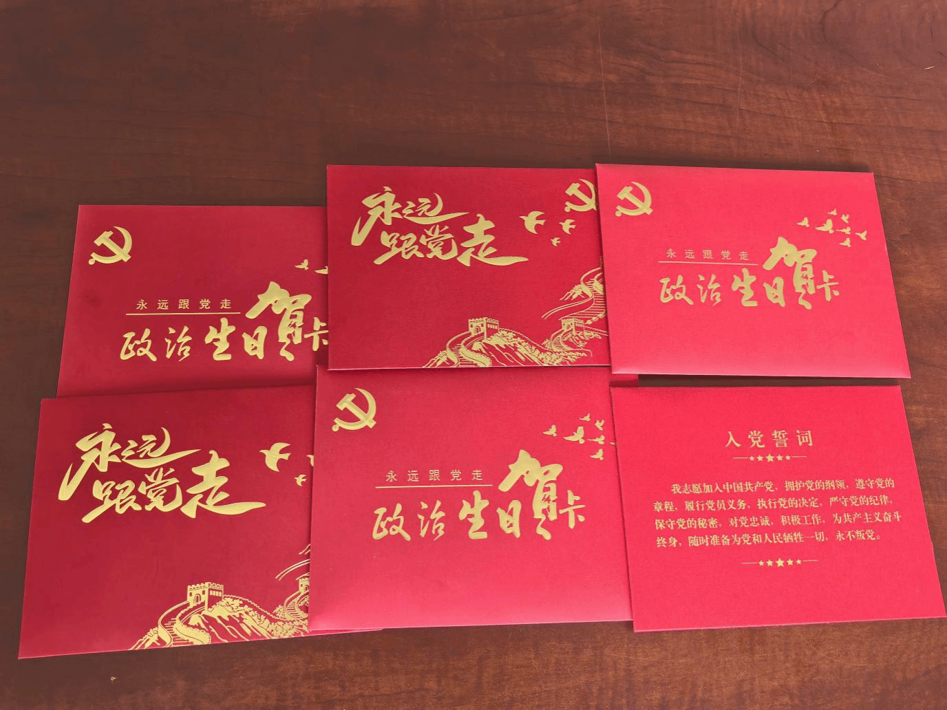 随后,党支部为党员同志精心准备了政治生日贺卡。贺卡上不仅印有入党誓词,还标注着每位党员的入党时间。党员们纷纷表示,这张政治生日贺卡意义非凡,是党组织对自己的关怀与肯定,今后将时刻牢记党员身份,践行党的宗旨,永葆共产党员的先进性。