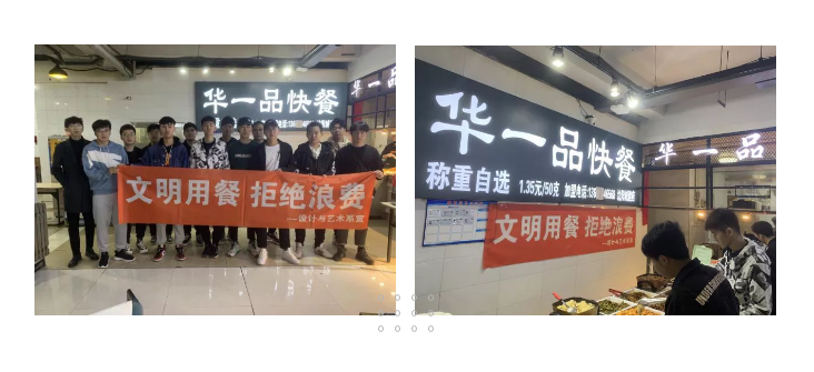 提倡文明就餐,是当代大学生文明修身的一项重要内容。以学校“21天文明养成计划活动”为平台,设计与艺术系于近日在第一食堂开展“文明用餐,从我做起”活动,力争以自己为榜样,号召身边学生文明就餐,共同营造一个文明、有序、温馨的就餐环境。