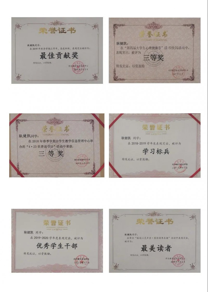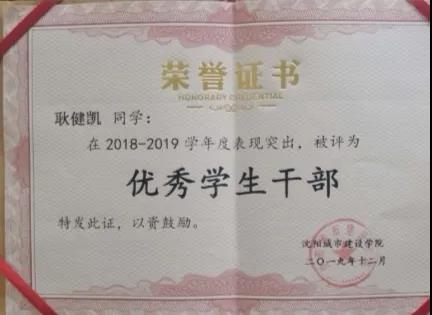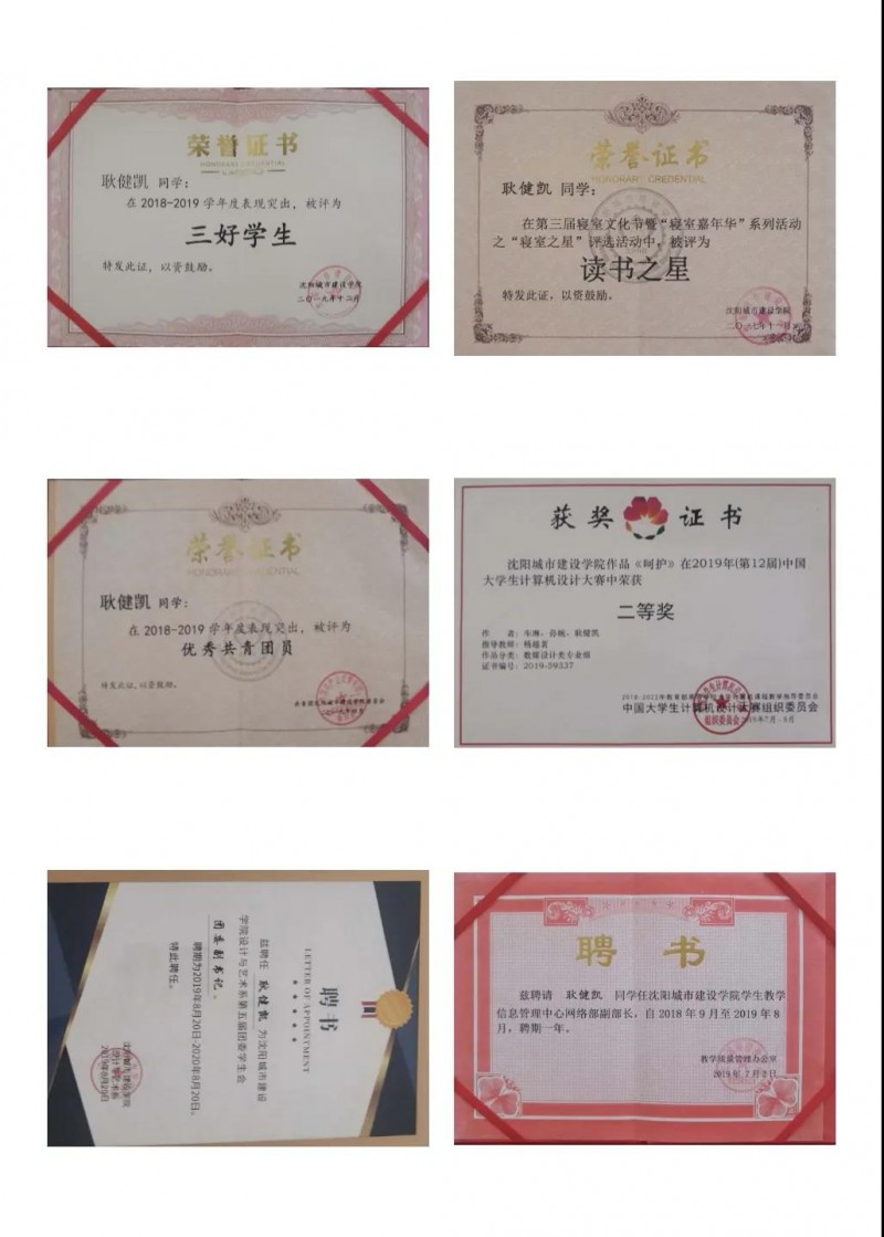 耿健凯,男,汉族,中共党员,1998年7月29日出生。2017年进入伟德国际1946设计与艺术系视觉传达设计(中职升本)17级1班学习,通过竞选担任班级学习委员,同年九月份向党组织提交入党申请书。在大三学年担任设计与艺术系团委学生会团委副书记,沈阳城市学院学生教学信息质量中心网络部部长,并于2019年6月份成为一名光荣的中共党员。