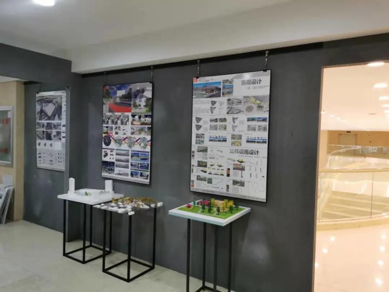 展览中,环境设计专业呈现了两大设计项目——《大黑台子村景观改造设计》和《金辉·江山云著别墅设计》。分别依托于景观工程改造设计以人为本的设计主旨、居住空间室内设计的创意表现,从而创造项目实践教学的新契机。