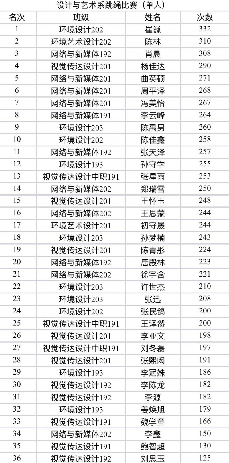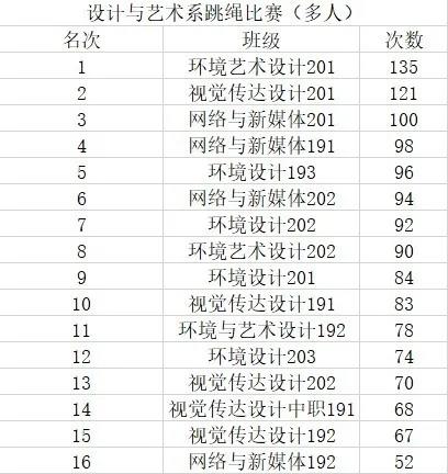 为了促进学生和谐发展,培养学生对体育运动的兴趣,增强体质,丰富校园文化生活。以班级为单位,围绕培养学生身体素质,养成乐观精神。通过班级中的互帮互助,班级之间的竞赛等,营造浓厚的运动氛围,拥有健康体魄。跳绳比赛已然结束。接下来让小艺带大家一起来看一下成绩吧!