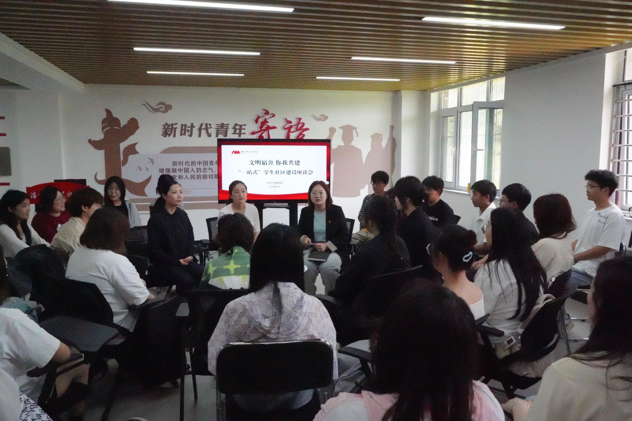 在随后的交流过程中,学院2023级寝室长根据宿舍实际情况踊跃发言,畅谈了对“一站式”学生社区和文明宿舍建设的期待和建议。他们围绕应当加强“一站式”学生社区服务的宣传、合理利用学生社区的有限空间、提供更多个性化、多元化的服务和基础设施升级等方面提出了建设性的意见和建议。与会领导老师认真倾听、详细记录,对学生们提出的困惑和问题进行解答,座谈会气氛热烈融洽。