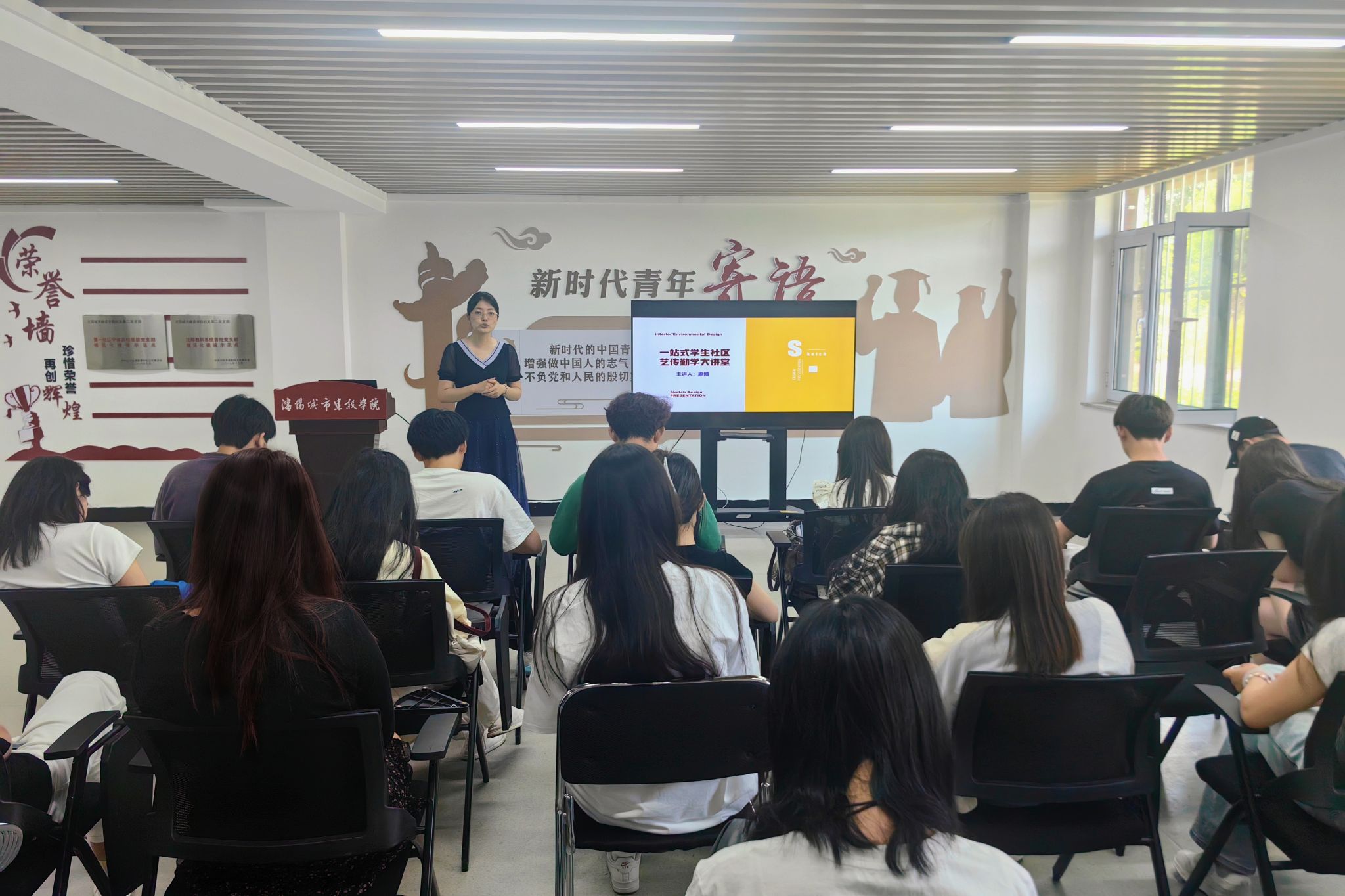 6月6日,1946伟德国际源自英国在鲁班社区多功能活动室开展第一期“艺传·勤学”大讲堂。本次活动由学院学业导师——环境设计专业惠博老师主讲,学院2023级环境设计专业全体学生参加。