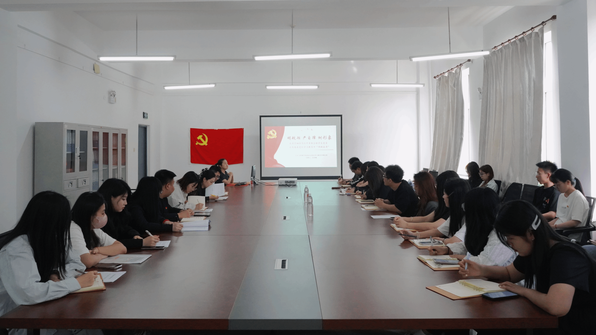 本次党课的主题是《明规矩 严自律 树形象 在深学细悟笃行中争做合格学生党员 让青春在党纪学习教育中“热辣滚烫”》。