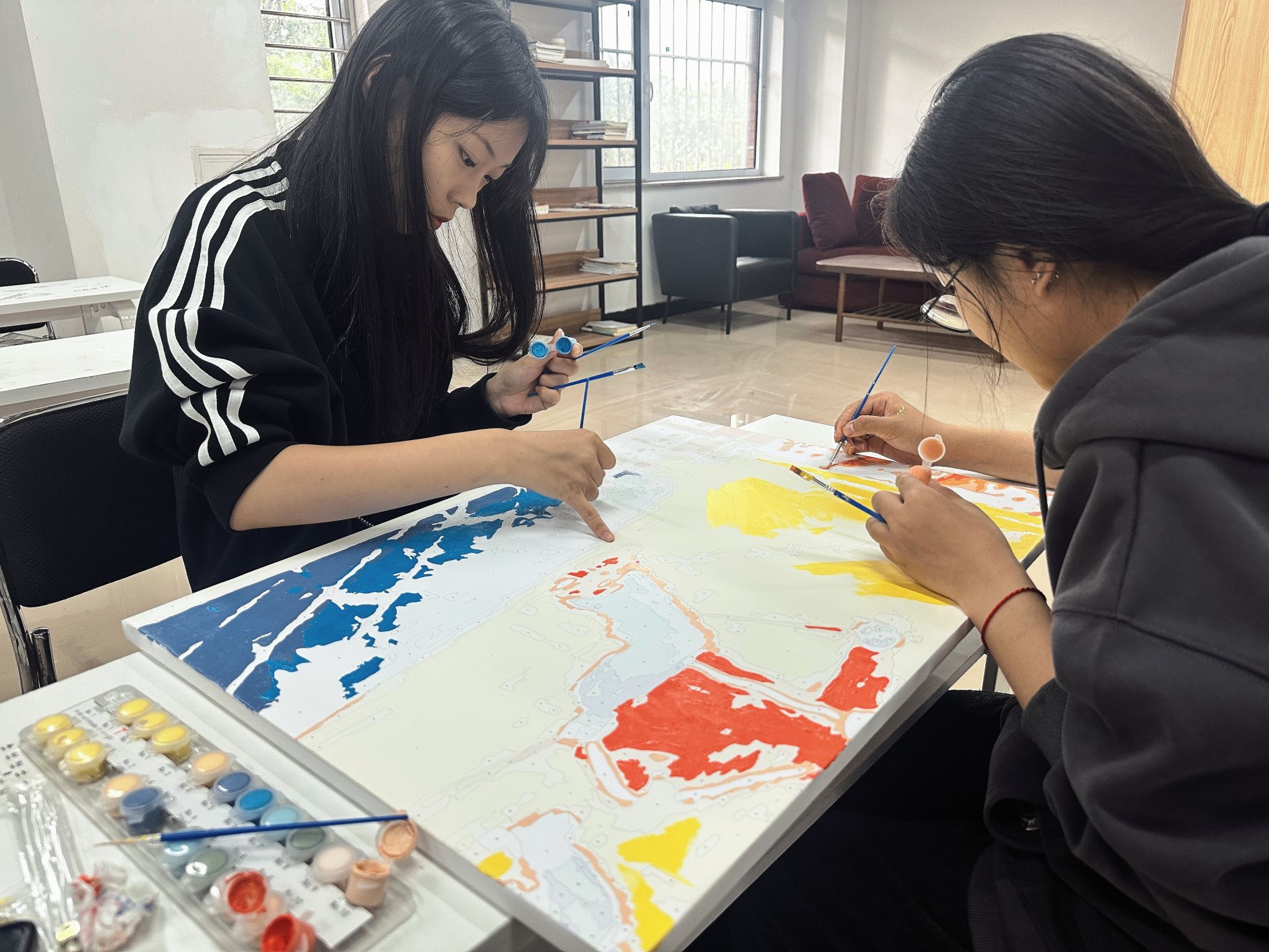 活动现场,气氛热烈庄重。学院2024级新生和尚青社团的同学们手握画笔,心怀崇敬,一笔一划间,勾勒出祖国的大好河山,一撇一捺中,倾注了对国家最真挚的祝福与期待。他们用绚烂的色彩,丰富的线条,展现了新中国成立以来翻天覆地的变化和日新月异的发展,也寄托了对祖国未来的美好愿景。