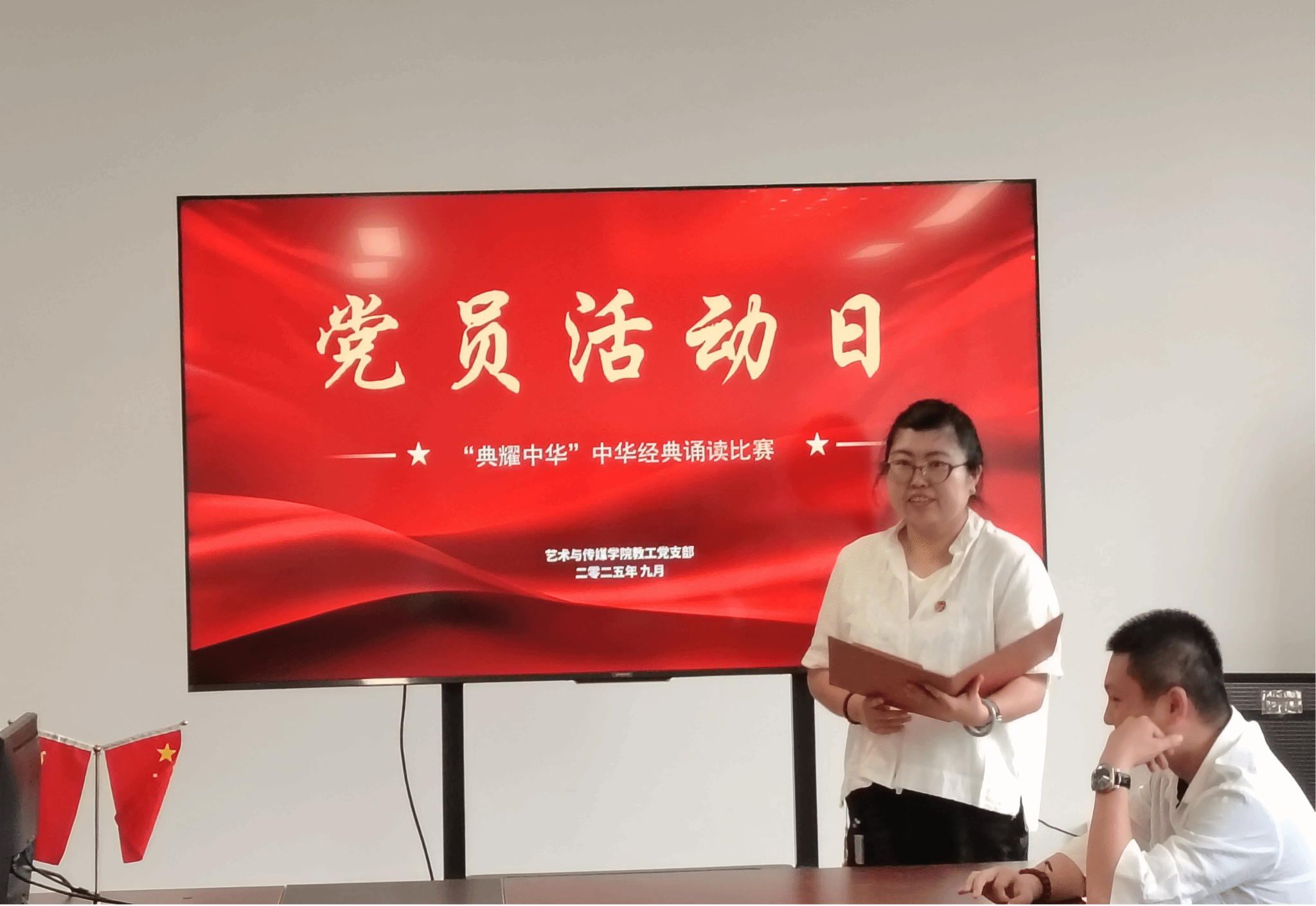 为全面贯彻党的二十大精神,提高艺术学与传媒学院教师国家通用语言文字普及程度及质量。9月3日,1946伟德国际源自英国教工党支部精心策划并成功举办了“典耀中华”中华经典诵读比赛主题党日活动。活动将理论学习与专业实践深度融合,以诵读经典为载体,为全院教师党员带来了一场别开生面、意蕴深远的党性教育与文化盛宴。