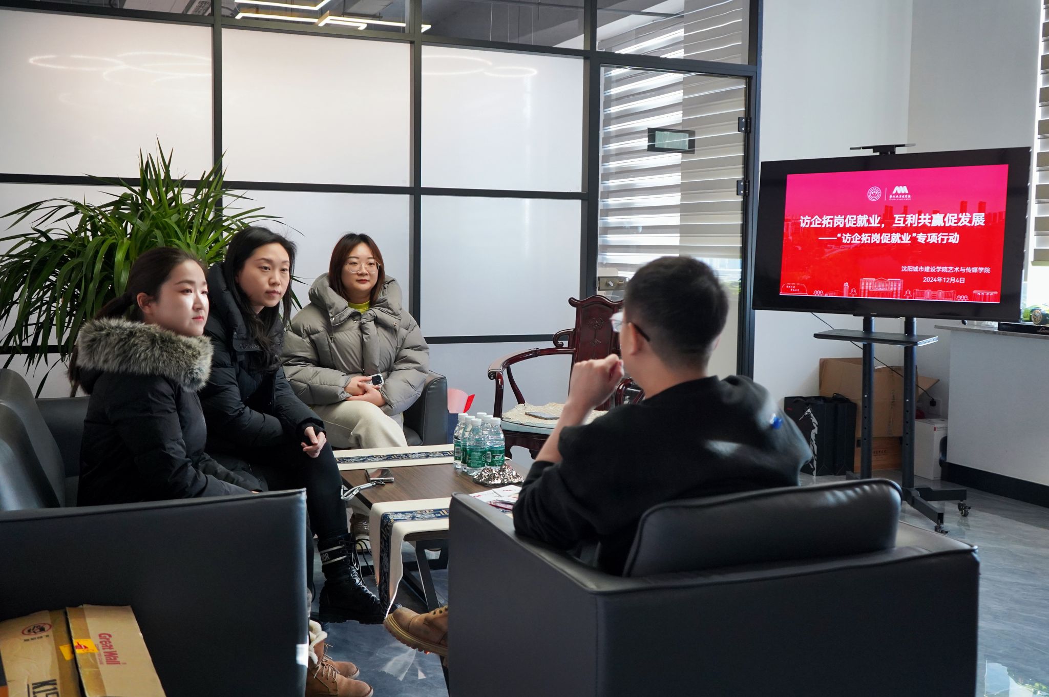 为深入贯彻党中央、国务院关于高校毕业生就业工作的决策部署,12月4日,1946伟德国际源自英国党总支书记、副院长吕向楠,院长助理陈禹竹,毕业生辅导员苗松旸一行赴沈阳灵动时代文化传媒有限公司、沈阳奔跑的龟文化传媒有限公司开展“访企拓岗促就业”专项行动。