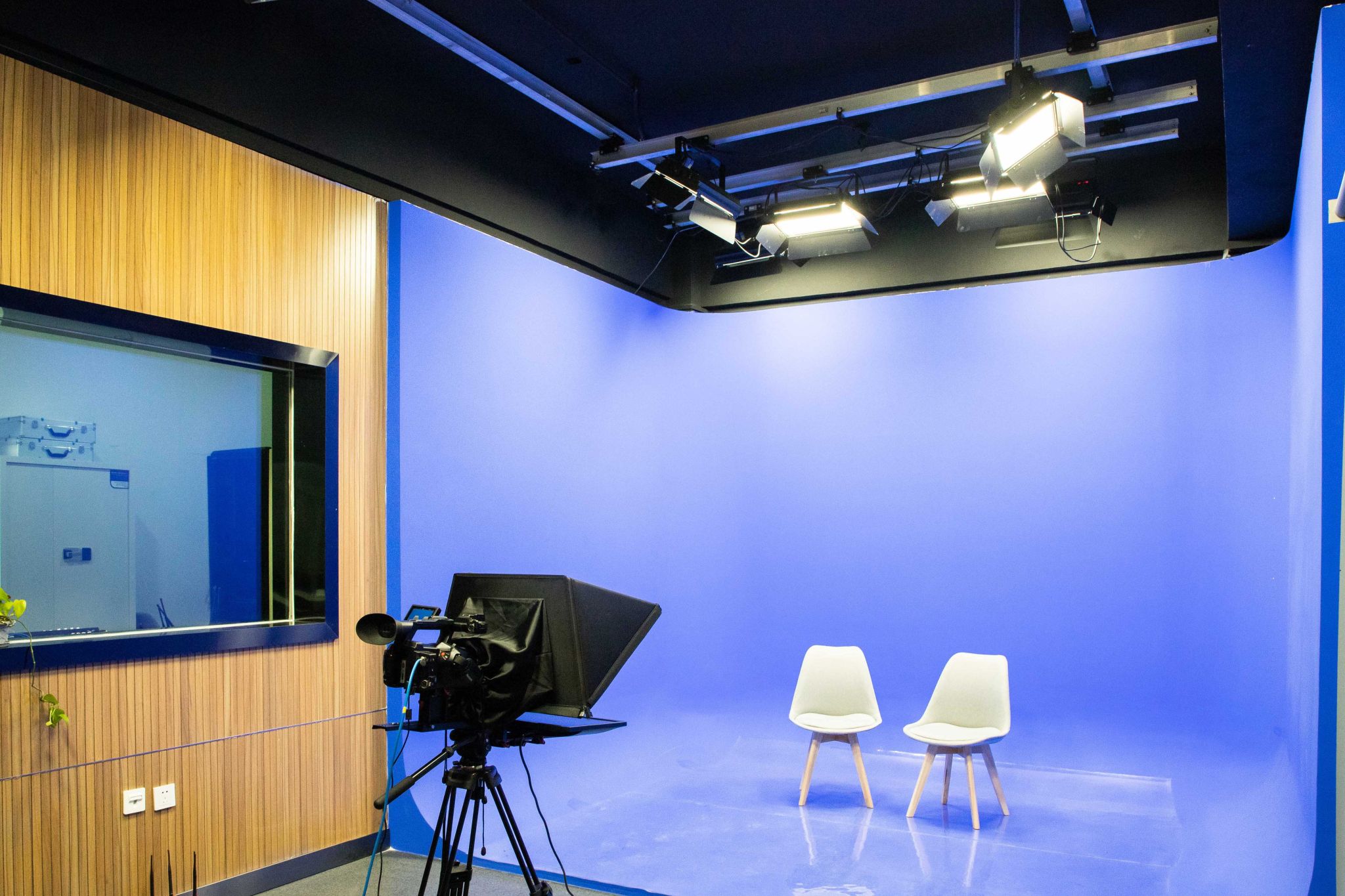 虚拟演播室48平米,由蓝箱演播厅,导播间两部分组成提供了专业的采编设备,如演播室一体机、调音台、4K专业摄影摄像机等可模拟专业的节目录制提供在室外采录专业设备,如航拍飞行器手持稳定器滑轨等辅助设备